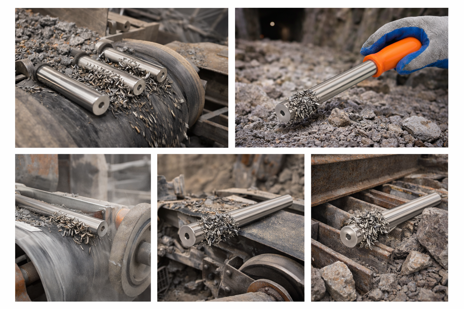 Las barras magnéticas generan un potente campo magnético, capaz de captar material metálico tipo rebaba, incluso partículas ferrosas finas presentes en materiales sólidos.